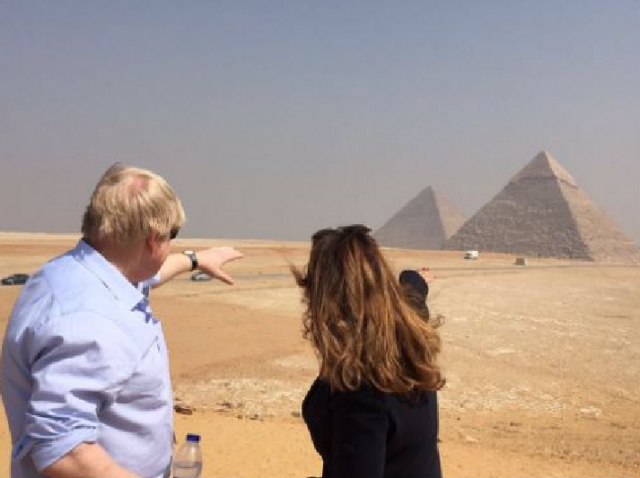 قام وزير الخارجية البريطانى بوريس جونسون، اليوم الأحد، بزيارة منطقة أهرامات الجيزة، فى إطار جولته التى يقوم بها فى مصر وتشمل عددا من اللقاءات والفعاليات المهمة.