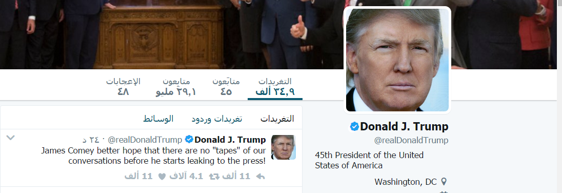 تحذيرات ترامب جاءت فى تغريدة له على صفحته بموقع التواصل الاجتماعى "تويتر".