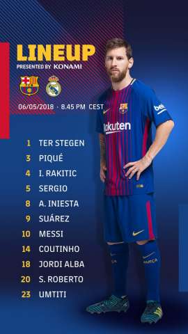 كشف إرنستو فالفيردى، المدير الفنى لفريق برشلونة عن التشكيل الرسمى لفريق برشلونة، فى المباراة التى سوف تجمعه مع ريال مدريد فى التاسعة إلا الربع من مساء اليوم الأحد، على ملعب "كامب نو"، وذلك فى قمة مباريات الجولة 36 من الدوري الإسباني.