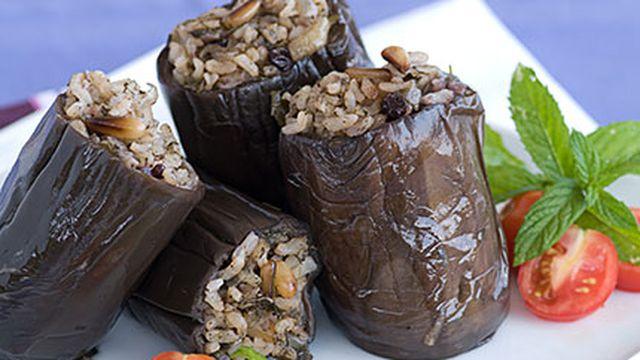الباذنجان المحشي بالأرز و اللحم المفروم