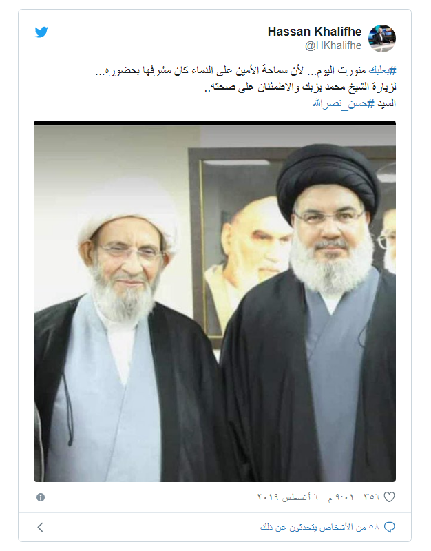 ففي خطوة نادرة، قام نصر الله بزيارة الشيخ محمد يزبك رئيس الهيئة الشرعية في "حزب الله" بمنزله الكائن في بعلبك، بعدما خضع الأخير لعملية جراحية في إيران، وعاد معافى إلى لبنان بعد فترة قضاها في الخارج.