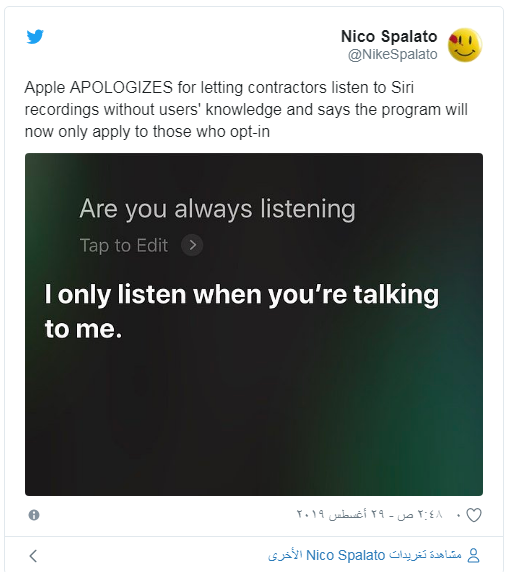 تقدمت "آبل" باعتذار واضح عن السماح للمقاولين بالاستماع إلى مقتطفات من محادثات المستخدمين المسجلة مع المساعد الرقمي "سيري"، وهي ممارسة قوضت جهودها لوضع نفسها كجهة موثوقة للخصوصية.