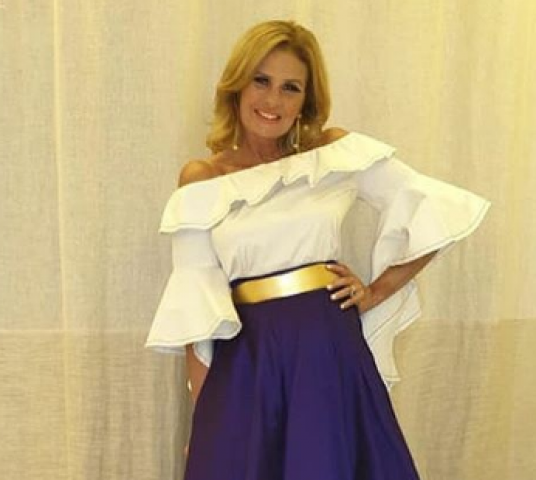 وظهرت يسرا باطلالة ناعمة ، حيث ارتدت فستانا ينقسم الى قسمين ، القسم الاول فى الجزء العلوى لونه ابيض ، والجزء الاخر موف.