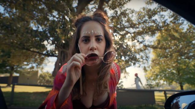 وتظهر في الإعلان الذي لا تتجاوز مدته 15 ثانية، شابة تنظر لصورتها المنعكسة على زجاج سيارة متوقفة، ثم تنفتح نافذة السيارة ليظهر فيها صبيان وهما يحدقان بذهول في صدرها قبل أن تبتسم وتقول "هل قال أحد كيه.إف.سي؟".
