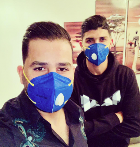 ساسى يحتفل بعيد ميلاده بالكمامة مع وكيل أعماله