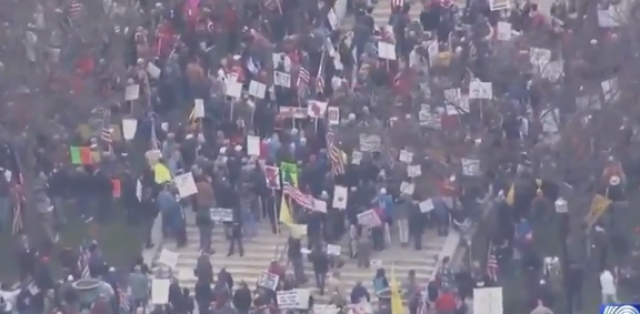 وقال محتج من خلال بوق "لا تتركوا الشيوعيين يسيطرون على بلدنا. فلتبقوا أقوياء ومتحدين وواثقين وفخورين بأمريكا".