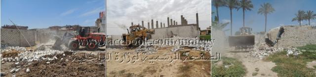 تنفيذاً لتوجيهات القيادة السياسية بعدم التهاون والتصدى بحسم لحالات الإستيلاء والتعدى والبناء على أراضى أملاك الدولة والعمل على سرعة إستردادها تعزيزاً لمبدأ سيادة القانون، فقد واصلت أجهزة وزارة الداخلية بمعاونة الأجهزة الإدارية بمختلف المحافظات تفعيل ضوابط تنفيذ قرارات الإزالة على كافة التعديات الواقعة على الرقعة الزراعية وأملاك الدولة ومنافع الرى والصرف ومجرى نهر النيل والتصدى لمحاولات البعض لإستغلال فترات حظر تحرك المواطنين لإرتكاب تلك المخالفات ، حيث قامت أجهزة الوزارة بتوجيه حملات مكبرة لتأمين تنفيذ قرارات إزالة تلك التعديات.. وقد أسفرت جهودها خلال 24 ساعة عن تحقيق النتائج الإيجابية التالية:-