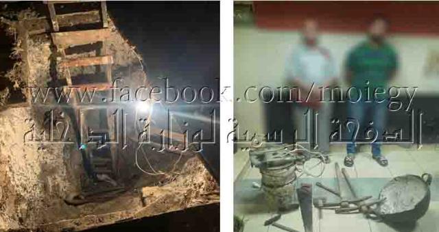 عقب تقنين الإجراءات أمكن ضبطهما حال قيامهما بالتنقيب عن الآثار داخل غرفة كائنة بالطابق الأرضى بذات العقار (مستأجرة لأحدهما) وعُثر بداخلها على حفرة قطرها (2 متر بعمق 7 متر) وأدوات التنقيب، وبمواجهتهما إعترفا بقيامهما بأعمال الحفر بقصد التنقيب عن الآثار .