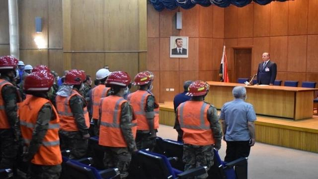 ونشرت الوزارة صورا قالت إنها من "احتفالية توزيع المكافآت المالية التي منحها سيد الوطن للإطفائيين من الدفاع المدني وريف دمشق وإطفائيي وزارة النفط وعمال الصيانة في وزارة النفط".