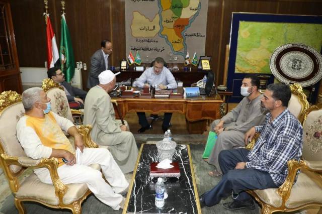 محافظ المنوفية يلتقي أهالي كفر العامرة بمكتبه لبحث شكواهم
