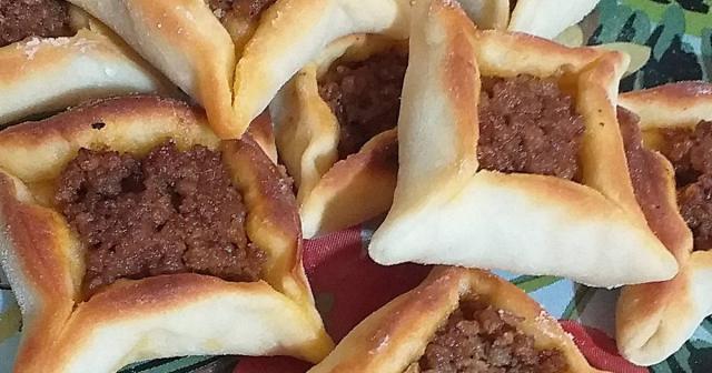 نحضر كوباً متوسط الحجم، ونقطّع العجينة به إلى دوائر، وفي كل دائرة نضع القليل من حشوة اللحمة التي حضرناها.