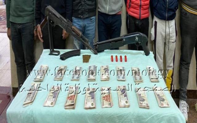 عقب تقنين الإجراءات أمكن ضبطهم.. وبحوزتهم (بندقية آلية- بندقية خرطوش- عدد من الطلقات مختلفة الأعيرة- سيارتين "المستخدمين فى إرتكاب الواقعة").