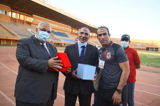 سيد عبد الحفيظ يهدى السفير نبيل مكي درع الأهلي