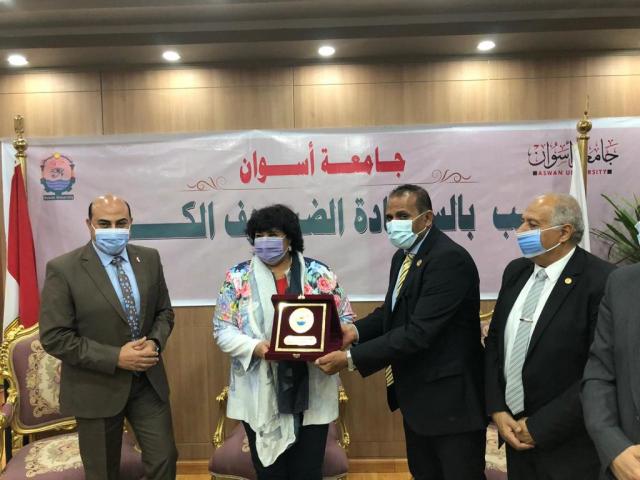 وزيرة الثقافة ومحافظ اسوان ورئيس جامعتها يفتتحون معرض الجامعة الأول للكتاب