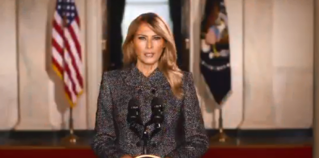 وقالت ميلانيا "إن وعد هذه الأمة ملك لجميع الذين من بيننا يتمسكون بنزاهتهم وقيمهم، ويغتنمون أي فرصة لإبداء التقدير لشخص آخر، ويتبعون عادات صالحة في حياتهم اليومية".