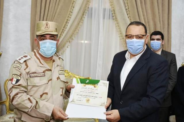 تقديراً لأدائه المتميز.. محافظ الشرقيه يُكرم المستشار العسكري بمنحه شعار المحافظه