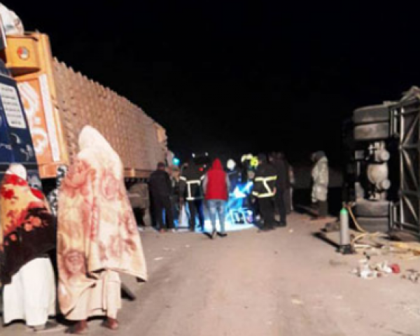 مصرع 4 أشخاص وإصابة 46 فى حادث تصادم بين أتوبيس وشاحنة نقل بطريق أبوسمبل بأسوان