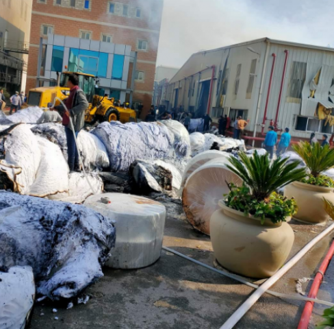 سيطرت قوات الحماية المدينة على تجديد اشتعال النيران بمصنع المناديل الورقية بالمنطقة الصناعية بمدينة السادات .