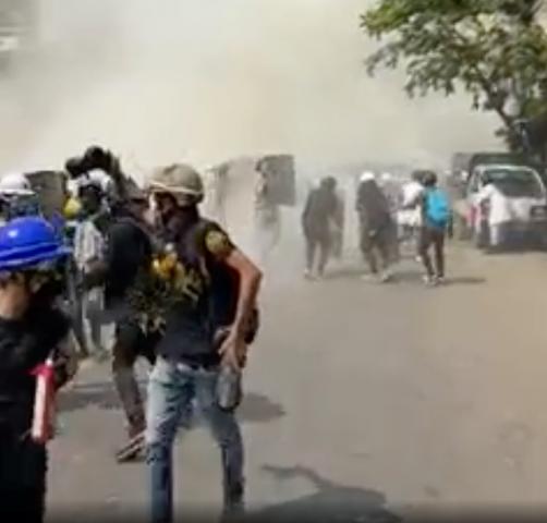 ووفقا لمقاطع مصورة نشرت على "فيسبوك"، فقد أطلقت الشرطة الغاز المسيل للدموع والقنابل الصوتية على المتظاهرين في مدينة يانغون الرئيسية وفي بلدة لاشيو بمنطقة شان شمالي البلاد.