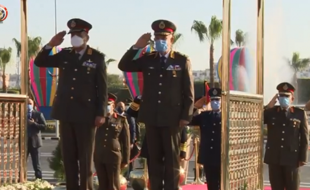 وفى نهاية مراسم الإحتفال قام بتحية عدد من قدامى القادة السابقين وكبار قادة القوات المسلحة .