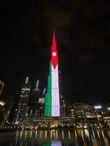 برج خليفة يتوهج بالعلم الأردني.. فيديو