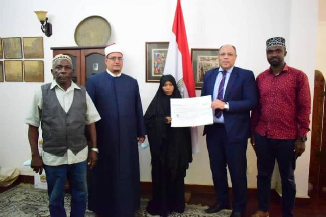 السفير المصري في تنزانيا يكرم المتسابقة الفائزة بالمركز الثاني في المسابقة العالمية لحفظ القرآن الكريم