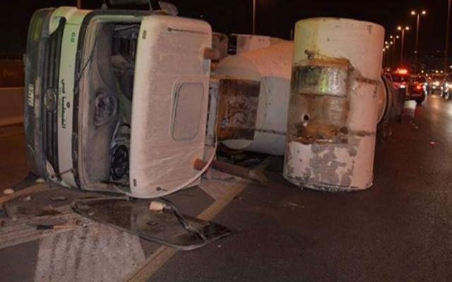 مصرع شخص وإصابة 14 آخرين فى حادث انقلاب ”خلاطة أسمنت” على ميكروباص بالدقهلية