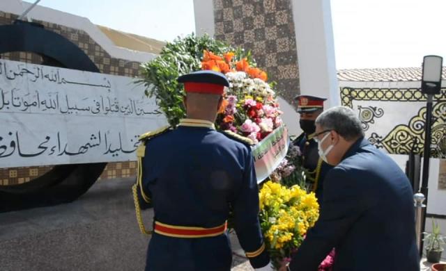 محافظ المنيا يضع إكليلا من الزهور على النصب التذكاري خلال احتفالات المحافظة بالذكري الـ 48 لنصر أكتوبر