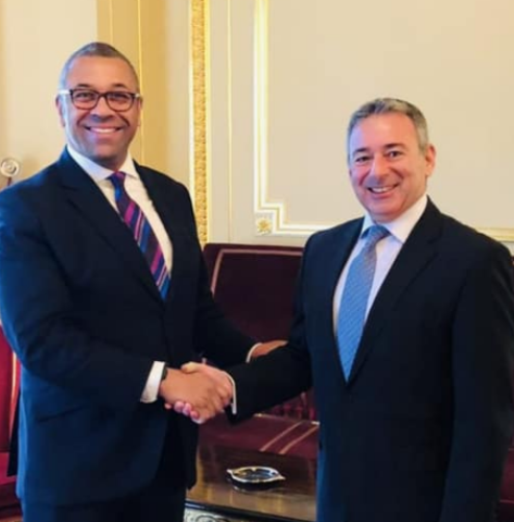 التقي السفير طارق عادل، سفير جمهورية مصر العربية في لندن، مع جيمس كليفرلي وزير الدولة البريطاني للشرق الأوسط وشمال أفريقيا، حيث تم مناقشة العلاقات الثنائية وما شهده مسار تعزيزها من تطورات إيجابية خلال الفترة الماضية، سواء على الصعيدين التجاري والاستثماري أو في إطار تسهيل حركة التنقل بين البلدين في ظل التدابير المفروضة بسبب جائحة فيروس كورونا.