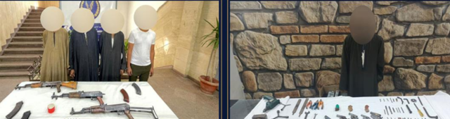 ضبط 4 أشخاص – لهم معلومات جنائية) وبحوزتهم 4 بنادق آلية ، وبحوزة أحدهم كمية من مخدر الهيروين.
