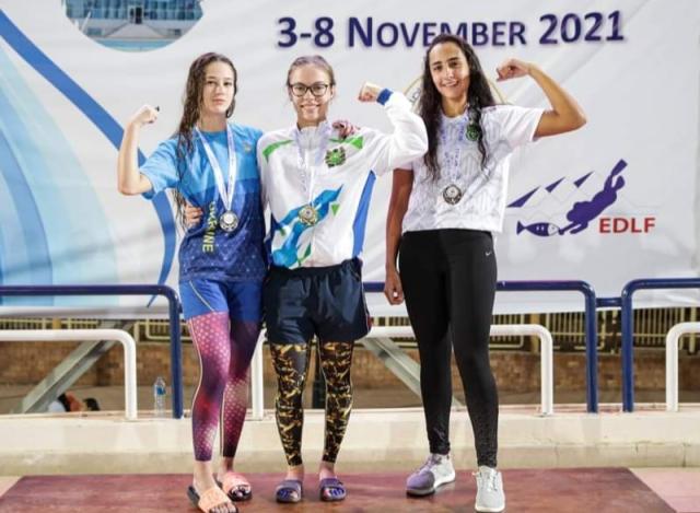وفي سباق 50 متر مونو ناشئات حصلت اللاعبة ملك شرف لاعبة فريق الغابة على المركز الثالث و الميدالية البرونزية.