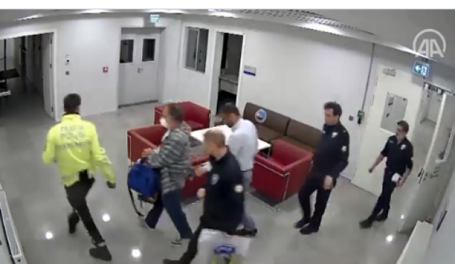 ونشرت وكالة "الأناضول" عبر حسابها باللغة الإنجليزية على "تويتر" تسجيلا يبدو أنه من كاميرات المراقبة بالمطار للحظات القبض على حنظل واقتياده إلى خارج المطار.