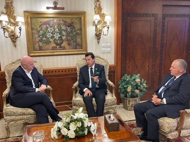 وزير الرياضة يستقبل رئيس الفيفا بمطار القاهرة الدولي