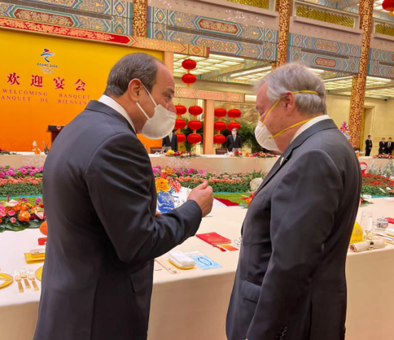 اجرى الرئيس عبد الفتاح السيسي محادثات جانبية في العاصمة الصينية بكين مع كل من السيد عمران خان رئيس وزراء باكستان، والرئيس شوكت ميرزاييف رئيس جمهورية أوزبكستان، وسمو الشيخ محمد بن زياد آل نهيان ولي عهد أبو ظبي، وسمو الأمير تميم بن حمد آل ثان أمير دولة قطر، والسيد أنطونيو جوتيريش سكرتير عام الأمم المتحدة، وذلك على هامش مأدبة الغداء التي أقامها الرئيس الصيني "شي جين بينج" صباح اليوم على شرف رؤساء الدول والحكومات المشاركين في حفل افتتاح دورة الألعاب الأولمبية الشتوية الرابعة والعشرين.