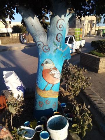 وأضافت «شاكر» تم تزيين والرسم على الأشجار بشارع الجامعة والمحافظة ومستشفى الجامعة، والعمل مستمر ليشمل التطوير والتزيين الأشجار بشوارع العاصمة، وعقب إجازة الفصل الدراسي الأول سيتم رسم الجداريات داخل المدارس وعدد من المؤسسات الحكومية، لتتحول للوحات فنية معبرة، تنعكس بالإيجاب على العاملين بها.