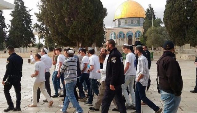 اقتحم عشرات المستوطنين، اليوم الأحد، المسجد الأقصى من جهة باب المغاربة، بحماية من قبل قوات وشرطة الاحتلال، وقاموا بجولات استفزازية وأداء طقوسا تلمودية في باحاته.