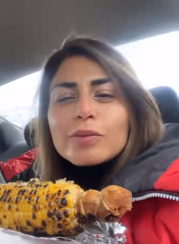 وظهرت منة فضالي بإطلالة شتوية جذابة بجاكيت أحمر وهي تتناول الذرة المشوي من سيارتها ، و علقت قائلة: اكتر حاجه بحبها الذرة المشوي.