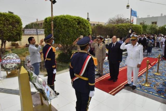 محافظ اسيوط يضع إكليل الزهور على النصب التذكاري لشهداء قرية بني عديات ويقدم التهنئة للمواطنين بهذه المناسبة