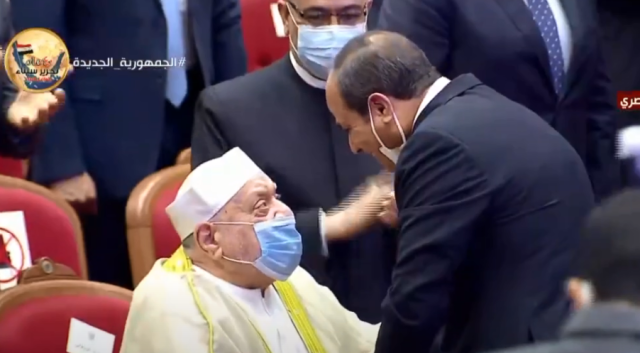 بالفيديو.. الرئيس السيسي يقبل رأس الشيخ أحمد عمر هاشم فور دخوله مقر احتفالية ليلة القدر