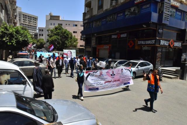 حيث اصطف المشاركون فى المسيرة امام الديوان العام للمحافظة بحضور المحافظ والقيادات المشاركة وطلاب المدارس الرياضية المشاركين فى المسيرة مرددين السلام الوطنى لجمهورية مصر العربية حاملين صورة الرئيس عبد الفتاح السيسى رئيس الجمهورية والاعلام ، ثم اعطى المحافظ اشارة البدء لتنطلق فعاليات المهرجان بمشاركة المحافظ من أمام الديوان العام للمحافظة مروراً بالمركز الثقافى الاسلامى ثم التوجه الى البوابة الخلفية لمجمع ملاعب التربية والتعليم " ارض الملاعب " لبدء الالعاب الجماعية والفردية واللياقة البدنية .