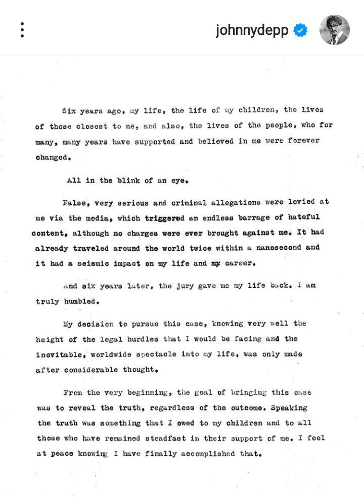بعد إدانة هيئة المحلفين لآمبر هيرد .. جوني ديب الحياة عادت لى