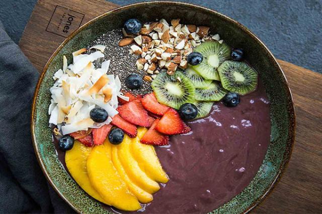 وعاء أكاي مع مشروب اللوز والمانجو