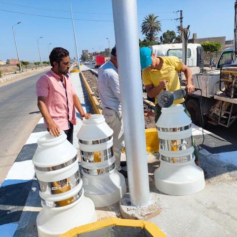 لتطوير وتجميل مدخل المدينة حيث تمت المتابعة الميدانية لأعمال تركيب عدد 42 قاعده ديكوريه مضيئه بطريق سندوب السنبلاوين وذلك ضمن أعمال التجميل وتحسين البيئة بمشروعات الخطه الاستثمارية ٢٠٢١ /٢٠٢٢ بهدف تحسين الصوره البصريه للمواطن بعواصم المحافظات وعلي الطرق العامة بهدف الارتقاء بالشكل الجمالي للمنصورة عاصمة الدقهلية..