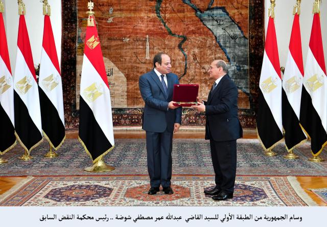 الرئيس السيسي يمنح وسام الجمهورية لرؤساء محكمة النقض وقضايا الدولة السابقين