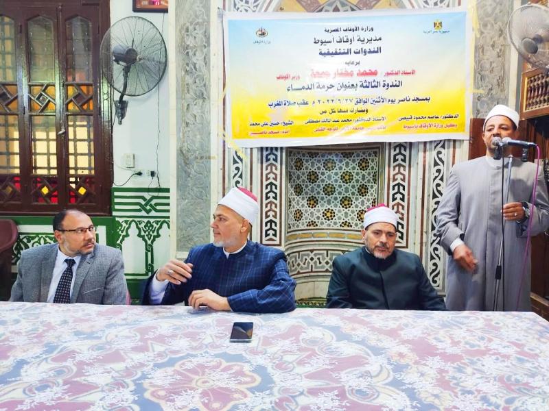 نائب رئيس جامعة الأزهر للوجه القبلي يشارك في الندوة التثقيفية ”حرمة الدماء” بأوقاف أسيوط