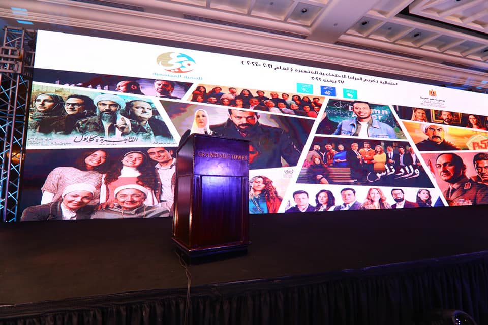 نظمت وزارة التضامن الاجتماعي أمسية احتفالية لتكريم الأعمال الدرامية الاجتماعية المتميزة للموسم الدرامي 2021-2022، بحضور مبدعي تلك الأعمال، من الفنانين وكتاب الدراما والمخرجين والجهات المنتجة لتلك المسلسلات، والإعلاميين والنقاد وكبار الكتاب، وأعضاء لجنة اختيار الأعمال المتميزة اجتماعياً، بالإضافة إلى ممثلي المؤسسات الدولية وممثلي منظمات المجتمع المدني المعنية بصناعة السينما والدراما والجمعيات الأهلية الشريكة للوزارة في برامج ومشروعات التنمية المستدامة.