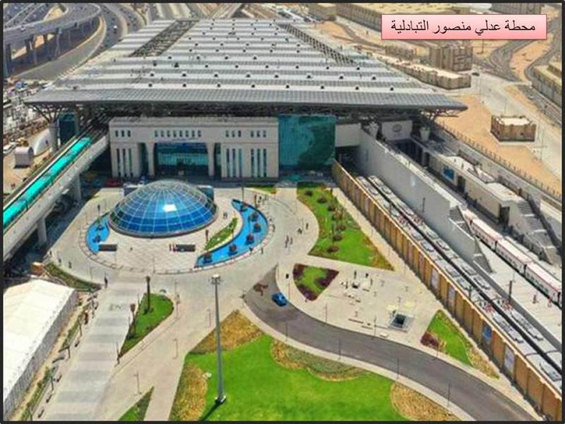 وفيما يتعلق بمحطة عدلي منصور أشار الوزير إن إجمالي مساحة المحطة يبلغ 30 فدان ويتم تبادل الخدمة بها بين 5 وسائل نقل وهي ( القطار الكهربائي الخفيف LRT – الخط الثالث لمترو الأنفاق – خط سكة حديد القاهرة/ السويس) ومحطة السوبرجيت (أتوبيسات الأقاليم) والأتوبيس الترددي عدلي منصور/ مطار القاهرة والأتوبيس الترددي عدلي منصور / موقف الأقاليم كما يوجد بالمحطة منطقة انتظار عربات الملاكي شمال كوبري السلام سعة 260 سيارة علي مساحة 4,5 فدان ومنطقة انتظار عربات كبار الشخصيات أمام محطة عدلي منصور سعة 100 سيارة علي مساحة 1,5 فدان ومناطق خضراء وأرصفة بمساحة 8 فدان وأنفاق وممرات للمشاة لربط مكونات المحطة مع بعضها بطول 500 متر ومول تجاري لخدمة المحطة والمنطقة المجاورة علي مساحة 6,5 فدان ويشمل دور بدروم ( جراج ) سعة600 سيارة وعدد 2 دور تجاري ، مضيفا ان محطة عدلي منصور من الداخل بإجمالي مساحة التغطية 6 فدان مغطاة بمنشأ معدني بكامل المساحة وبارتفاع 23 متر حيث تشمل المحطة البوابة الرئيسية بارتفاع 17 متر و3 محطات أسفل التغطية : (محطة الخط الثالث لمترو الأنفاق - محطة القطار الكهربائيLRT - محطة سكة حديد القاهرة/السويس ) وساحة رئيسية تتوسط المحطات لربطها ببعضها بمساحة 7500 م2 والكوبري الرابط بين محطة القطار الكهربائي و محطة المترو مباشرة و الكوبري الرابط بين محطة القطار الكهربائي و ومحطة سكة حديد القاهرة – السويس وقاعة كبار الزوار بمساحة 160 م2 ومنطقة خدمات تجارية علوية لخدمة المحطة بمساحة 1500 م2.