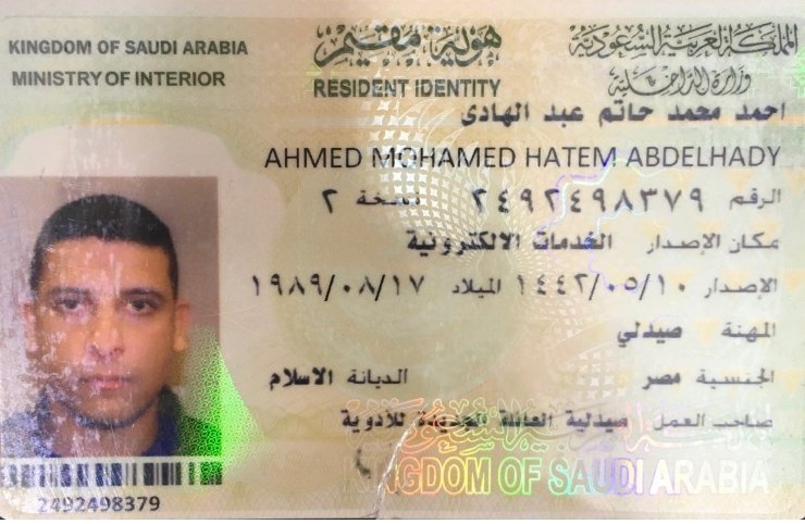 وقال هيثم سعد الدين المتحدث الرسمي والمستشار الإعلامي لوزارة القوي العاملة : إن الوزير تلقي تقريرا الملحق العمالي أحمد رجائي رئيس مكتب التمثيل العمالي بالرياض ، أشار فيه إلي أن الصيدلي المصري القتيل يدعي أحمد محمد عبد الهادي، وهو من أبناء محافظة المنوفية مركز الشهداء ويبلغ من العمر 33 عاما.