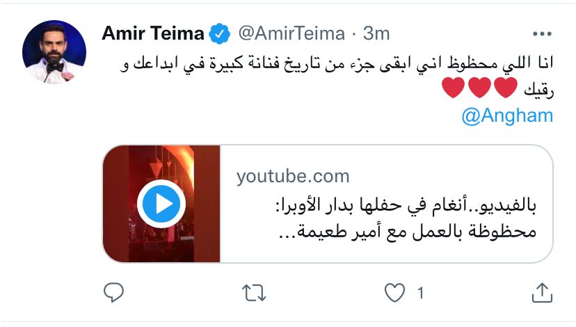 أمير طعيمة يرد على أنغام عبر تويتر بعد تصريحتها الاخيره