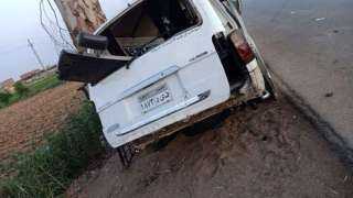 إصابة 10 أشخاص فى حادث انقلاب سيارة أعلى الطريق الإقليمى بالصف